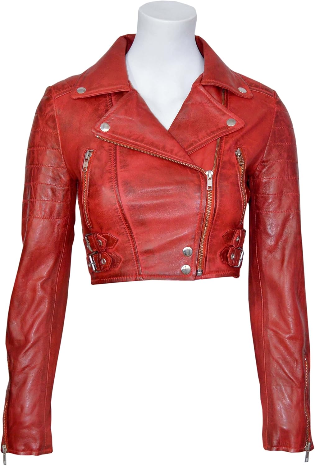 Women S Leather Jacket Short Body Pink Red Brown White Slim Fit Short Biker Style Lambskin 5625 Skin Coloured Amazon De Fashion